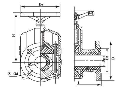当顺转手轮时,使大小阀杆同时带动上下闸板,压缩管套,进行关闭,反转即行开启,这样,闸板在导柱之间上下往复完成阀门开闭工作。另外,因橡胶管套承力,因此在开关时,操作人员旋转手轮时只要感到适量抵触,均己达到开闭点, 切勿尽力或多人辅助,禁用其他工具开闭。